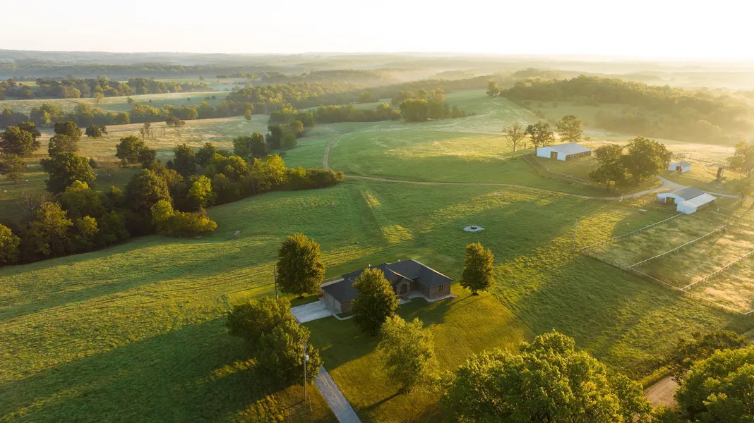 Welcome to The 707 Ranch which is a symbol of Missouri's beautiful landscape where cattle operations have paved the way for success in the Ozarks. The expansive open acreage, graced by ample water features and panoramic views, sets the stage for an ideal setting for rotational grazing and cattle backgrounding. The impressive perimeter and cross fencing with pipe cattle handling facilities, many improvements for equipment and hay storage, and a nice brick home to live in located in between Mansfield and Ava.The welcoming 3-bedroom, 3-bathroom home is designed for comfort and enjoyment, featuring an open layout, 2,180 finished square feet upstairs with an 1820 sq ft unfinished basement, along with a two-car attached garage. When you step onto the expansive 750-square-foot deck you will witness vast sunrises that stretch across the horizon. The strategic placement of the house provides a sweeping 2-mile-long view of the entire ranch.The 707 Ranch boasts incredible large-scale cattle working facilities, complete with expansive pipe-holding pens. There are seventeen cross-fenced pastures, each with a water supply for livestock consisting of 10 nice ponds and six automatic waterers, providing optimal conditions for cattle management. Additionally, three hay barns capable of holding 900 4x5 bales and a versatile shop building add practicality to the ranch's operations. With the capacity to comfortably run 175-200 cow-calf pairs, the ranch is ready to go with excellent fencing and three thoughtfully designed corrals, so bring your livestock trailer to closing.The stunning landscape includes impressive ridges and bottoms with mature oaks and walnut trees, creating a haven for wildlife. A live water spring flows year-round and is accompanied by a creek that enhances the land's natural beauty. An extensive trail system through the ranch creates great access to livestock and every corner of the property.For over three decades, the 707 Ranch has been meticulously managed and cared for by the same dedicated owner, a testament to their unwavering commitment and passion for the property. This offering presents a rare opportunity to own a well-maintained, large continuous cattle ranch within an hour of Springfield, MO, all while enjoying the peace and seclusion that this serene home offers. Call The Utecht Land Team today for more information and a private showing! Remember to buy land they’re not making anymore.
