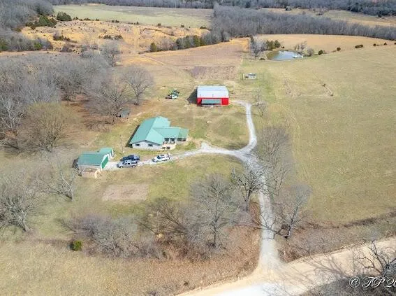 This is one you do not want to miss, with 3 large bedrooms and 3 full baths. Two of the bedrooms have private baths, the 3rd shares with access to the hallway and guest. Home has a very open floor plan The dining room is large and and has a grand piano and the freestanding fireplace. The home has central Heat & air in all rooms but 2 bedrooms and 2 baths ALSO have individualized space heat. Kitchen has a huge walk in pantry 10x5. Mud RM serves as Laundry room with a door to back yard and cloths line pole. All this on 63 acres, with some great views, fenced and cross fenced, great for horses, small hobby farm, there is a 50x30 Barn with a enclosed 50x44 lean too which has small pens for Goats or Sheep, The barn is tall enough for RV Parking. There is a 26x10 attached enclosed chicken pen on the front of the barn. There is a 22x20 detached garage.. The well house is 10x7.5 and also serves as a climate controlled early start for garden plants. Nice garden area with good soil. There is a pre-1900 Storm Shelter/ Root Cellar