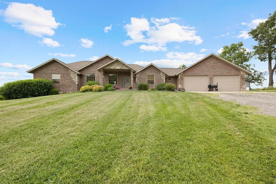 Beautiful all brick, move in ready home for sale in the Ozarks with 14 ac M/L of land! Welcome to this custom four-bedroom, three-full bathroom home nestled in the serene beauty of Southern Missouri. This property offers a perfect blend of comfort, style and scenic surroundings. When you enter the home you are greeted with high ceilings, hardwood floors and large windows providing lots of natural light. The kitchen features granite countertops and stainless steel appliances providing a stylish space for cooking and entertaining. The main floor is where you will also find a large master suite and additional bedroom with large bathroom providing ample accommodations for family and guest. The utility/mudroom off the attached two car garage is oversized perfect for storing coats, shoes and other belongings to keep your home clutter free. The lower level of this homes is a versatile space with a game area including a bar area for entertaining. The game area connects to the family room with even more living space. The bedrooms and bathroom on this level are also oversized. The star of the show is the deck off the main level of the home. This expansive space has views for MILES offering a picturesque setting to enjoy the beauty of the Ozarks. The land is fenced and you could have a horse, couple cows or livestock of your choice. The additional shop/garage is perfect for storage or additional vehicles. This home truly offers an unparalleled living experience, combining space and luxurious features with the charm of the Ozarks outdoors. There are NO RESTRICTIONS. Do what you want with YOUR land. Close to area rivers, streams, lakes and National Forest.