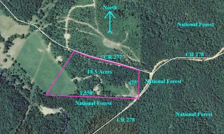 18 mostly wooded acres, joining the Mark Twain National Forest on the south and east sides. Far-reaching views. Access through the National Forest to North Fork of the White River. Spring. Small waterfall. Lots of deer tracks and other wildlife!