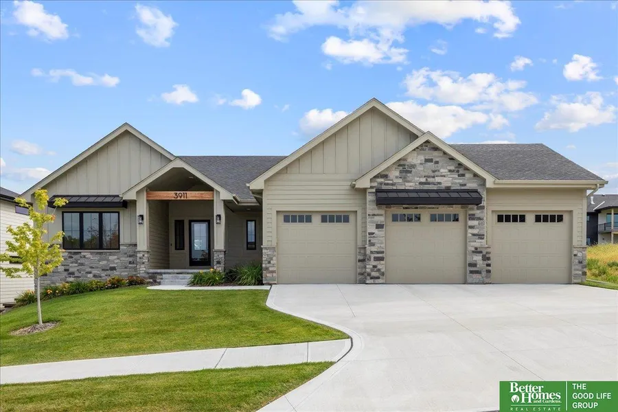 West-facing ranch on a tree-lined street and fully fenced yard greets you w/ an extended covered porch flanked by columns complementing natural stone & black Marvin windows. Inside, durable engineered wood floors span from the living room to the kitchen & dining area. Custom, locally-crafted cabinets reach the ceiling, adding to the storage provided by the large walk-in pantry, extended kitchen island, & built-in hutch w/ interior lighting & glass doors. Natural stone appears again on the fireplace from floor to ceiling, drawing the eye up to custom ceiling details. Upgrades carry through to the baths w/ quartz countertops, chrome fixtures, & ceramic tile (& so. much. storage!). Primary bedroom offers 2 walk-in closets! Lower level has a flex room, family room w/ electric fireplace, & well-equipped wet bar. Extended 3-car garage & elongated covered patio w/grid design add to the long lis...