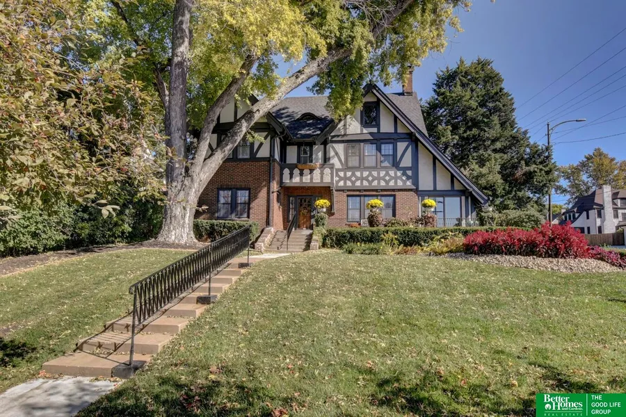 Presenting a rare piece of Omaha history, this grand upscale Tudor Revival home is located in the coveted and extraordinary Happy Hollow neighborhood. Surrounded by other stunning historic homes as your neighbors as well as memorial park and all of the Dundee shops and restaurants mere feet away, this home was beautifully built 101 years ago and is filled with character, style and updates. With zoned HVAC, each room can control its own temperature, refinished wood floors and fresh paint, a completely renovated 2nd floor bathroom, 3rd floor new clawfoot tub, new carpets, EnStone kitchen countertops and glass backsplash highlighted by new lighting both above and below the cabinets...and that's just the inside! The exterior restoration includes a new roof, new gutters with gutter guards and an irrigation system. Built by famed architect Bert B. Hene, this is just one of his Omaha masterpiec...