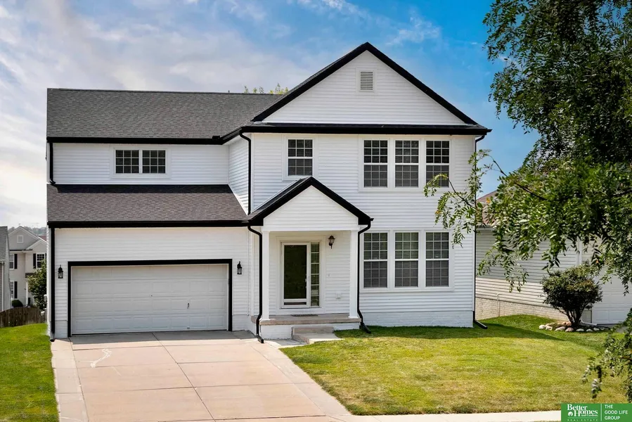 Brand new roof, siding, & gutters for this captivating 2-story home. Beautiful engineered hardwood floors welcome you & extend through the living, formal dining, & family room. The kitchen is a delight with granite countertops, island, stunning oak cabinetry, tile floors underfoot, eat-in dinette, & appliances that remain. The huge primary bedroom is a retreat, offering an expansive area plus a spa like en-suite bath featuring a separate soaker tub, shower, & dual vanity. The walk-in closet is a fashion enthusiasts dream, offering ample space for an extensive wardrobe. Three additional bedrooms ensure comfort for family & guests, with two bedrooms featuring walk-in closets, plus the convenience of second-level laundry makes daily routines smoother. The fully finished lower level is designed for entertaining, featuring a wet bar, a 3/4 bath, & direct access to the back patio. Nicely fenced flat yard, deck, Bennington schools, & pre-inspection, make this home a remarkable find.