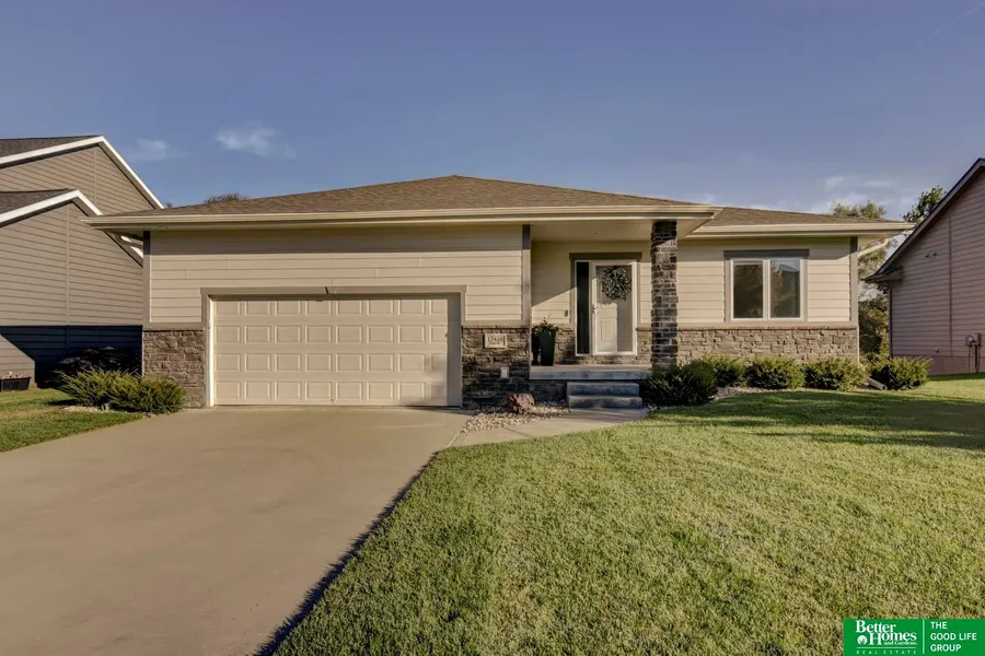 Located in Bennington’s Stratford Park, this south-facing walkout ranch backs to full tree line. Step inside to find new baseboards & trim, complementing the neutral color palette throughout. LVP flooring offers style & durability. Kitchen is a showstopper, with white cabinets & granite countertops. Living room boasts backyard views & brand-new fireplace accented by board-&-batten and herringbone, floating mantle, & cabinetry with floating shelves. The primary bedroom is a retreat with WI closet & a luxurious en-suite bathroom featuring tiled walk-in shower. Fully remodeled lower level continues the sophisticated design with LVP flooring & soothing color scheme. Expansive family room offers space for entertainment, complete with snack bar. Two bedrooms share 3/4 bath with a tiled shower. Outside, enjoy the serene backyard from the covered composite deck with sleek aluminum railings & gas line for grill. Neighborhood pool! Lower tax levy than surrounding neighborhoods!
