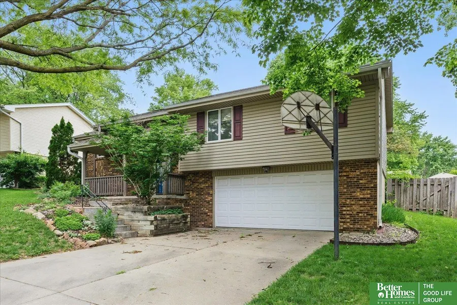 This cutie home in the Millard North School District is an incredible deal. Sitting on a south-facing and fully fenced lot, this home has light pouring in from all sides with big picture windows and sky lights in the vaulted ceiling. A grand fireplace flanked with built-in shelving welcomes you in the living room with professionally cleaned carpets. The eat-in kitchen has tons of storage along with granite countertops and subway tile backsplash. Ceiling fans in all bedrooms – including the primary en suite. The lower level has a spacious living room and walks out to the extra wide garage. Updates like a newer garage door opener, water softener, water heater, and radon mitigation system give peace of mind. Low-maintenance vinyl siding, storage shed, and oversized deck round out the amenities rare in this price range.