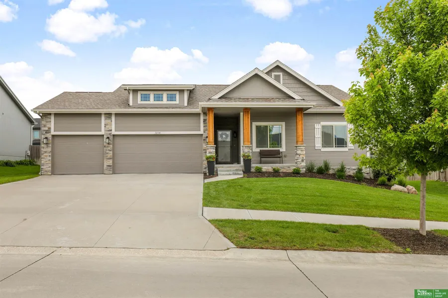 This better-than-new home is loaded with builder upgrades from its 2020 construction AND has even more features not found in new construction, such as $12,000 worth of new custom landscaping, a full privacy fence, a huge exercise room, one-way-visibility privacy film on select windows, NEW carpet, and a new CLASS 4 roof from June 2025! This ranch floorplan offers an open kitchen with quartz countertops, walk-in pantry, convenient main level laundry room, and LVP throughout. Stone surrounds the living room electric fireplace (which does generate heat) with a custom wood mantel. The finished basement - WOW! Extra large rec room with stylish slat wall, spacious bedroom with walk-in closet, bathroom with shower, and large home gym with rubber flooring & wall mirrors. South-facing driveway offers faster winter snow melt and covered backyard deck offers relaxing shade year-round. Home is in Bennington schools! Close to 220 acre Flanagan Lake, 5-mile trail, & park.