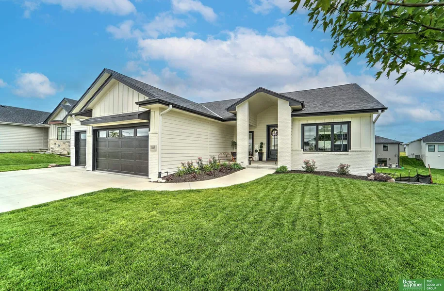 Why wait for new construction when you can have this practically brand new (built in 2023), beautiful 6 bedroom, 3 car ranch right now? Located in the Elkhorn School District, this bright, open floor plan Ranch features soaring ceilings, 2 fireplaces, a chef's kitchen with quartz countertops, gas range, walk-in pantry and beverage fridge. Drop zone and laundry off of garage with access to primary suite featuring soaring ceilings, 2 walk-in closets, new engineered hardwood floors, double sinks and walk-in shower. Spacious lower level features wonderful wet bar area, full bath and 3 more large bedrooms. Beautiful landscaping recently added and new coated flooring in garage.