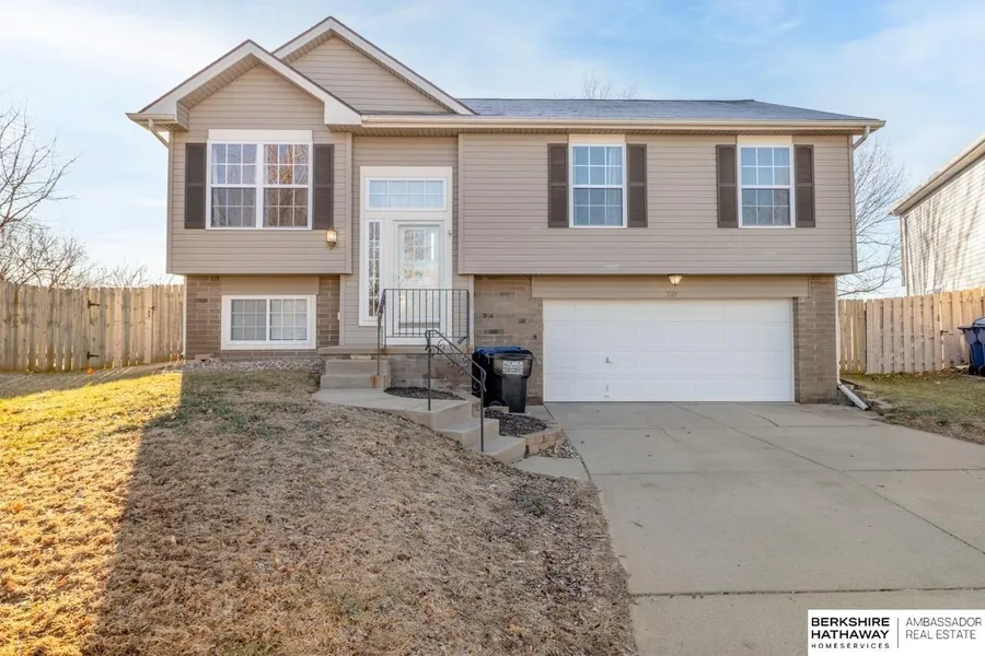 Jordan Zodieru, M: 402-671-4874, , - Wonderful 3 bed, 2 bath split entry in Millard Schools! Lovingly maintained by just two owners, this home features an open floor plan connecting the living room, kitchen, and dining area—perfect for entertaining. Enjoy the peace and privacy of no rear neighbors, along with stunning views from the elevated deck or lower patio. Nestled on a quiet cul-de-sac with a circle drive, traffic is minimal and curb appeal is high. The 2-car garage offers great storage, and the backyard is ideal for relaxing or hosting. Conveniently located near shopping, dining, and main roads. All measurements approximate.
