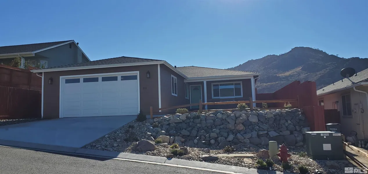 Great little home located in Pine View Estates that is only 2 years old! Beautiful views of the Sierra's and Pinenut mountains, open floorplan, granite counters, LVP flooring throughout living areas and master bedroom, carpet in guest bedrooms, landscaped front and rear, totally private backyard with covered and uncovered patio, covered patio in the front, vaulted ceilings, ceiling fans in all rooms, pellet stove, finished garage and more! Bring your personal touches and enjoy your almost new home.