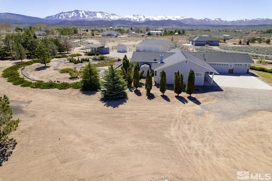 Come see this corner lot home on 4.42 acres, surrounded by mature trees, mountain views with a detached 4 car garage, corral setup, several extra storage sheds. This 3 bedroom 2 1/2 bath home also has an attached 3 car garage, has an open room concept, with high ceilings, pellet stove, new pressure tank installed in 2022, and new well pump placed in 2019, clean home ready for you to move right in.