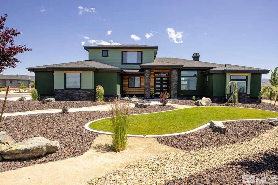 One of the loveliest, most elegant, contemporary homes in the Carson Valley. This custom estate home and guest home were built in 2021 and sit on a 2.04 acre lot in popular Grandview Ranch Estates. The main house features 3264 sq.feet, 4 bedrooms, 4.5 baths, PLUS office/den... the guest home is 1020 sq. feet with 1 bedroom, and 1.5 bathrooms. A 3 car fully finished garage is attached to the main home plus a 45' pull through RV garage attached to the guest home for all your toys, cars or RV. Remarks below.