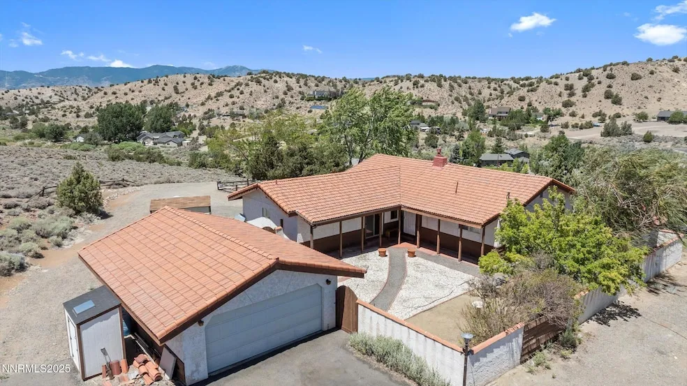 Price Improvement! Privacy, Views, and Potential on 2.96 Acres!Discover this hidden gem with sweeping views of Jobs Peak and the Pine Nut Mountains, perfectly situated on nearly 3 private acres and bordering expansive BLM land. This single-story home offers 3 bedrooms, 2 bathrooms, and an excellent layout that balances comfort and functionality. With no HOA and minimal nearby neighbors, you'll enjoy the peace and freedom of rural living - plus, there's ample space for all your toys thanks to a convenient pull-in driveway and detached garage with a workshop. Additional features include a Tuff Shed, 8x12 out-building, matching in style of the main house and suitable for a variety of uses, and a functional backup generator for added security and convenience. Families and pet owners will appreciate the enclosed courtyard, creating a safe space to play and relax. While the home needs some TLC...