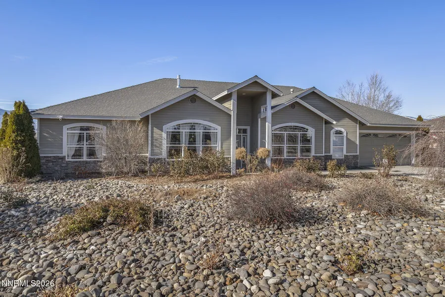 Step into a private sanctuary designed for both relaxation and recreation in this highly desirable Minden neighborhood! Inside, you will discover an airy ambience created by large windows, elegant oversized custom doors, and Hickory reclaimed wood flooring. The kitchen is a chef's dream, perfect for all of your entertaining needs. The vast primary bedroom can accommodate a sitting area or home office, attached to a luxurious primary bathroom which includes a deep soaking tub, walk-in shower, and massive walk-in closet. The two other bedrooms and bathroom are at a separate area of the house, suitable for any of your families needs. Outdoors, you will find an expansive backyard, including planted grounds that showcase an outdoor paradise, including an orchard with 23 varieties of fruit trees, and a garden area. The backyard also includes a serene Butterfly Koi pond that stuns with a waterf...