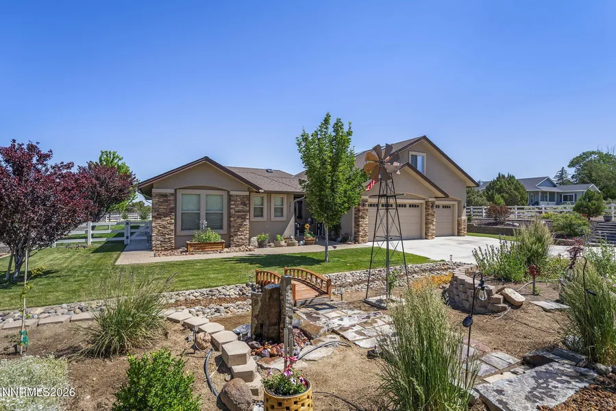 Set on just under an acre and a half in the peaceful rural landscape of Gardnerville, this beautifully maintained property offers an exceptional blend of privacy, comfort, and refined country living, surrounded by open space and expansive mountain views. Thoughtfully designed for both everyday living and entertaining, the home sits on meticulously cared-for grounds featuring mature landscaping, fruit trees, an established garden with room to expand, corral space, and multiple outbuildings ideal for storage or equipment. The property is fully irrigated with year-round yard hydrants and Wi-Fi-controlled front and rear sprinklers, enhancing both convenience and functionality. The land offers ample room for RV access, recreational toys, horses, and farm animals-providing endless opportunities to customize the property to fit your lifestyle. Inside, the residence showcases a tastefully updated kitchen and a versatile upstairs bonus room perfect for a home office, gym, art studio, or playroom. The primary suite is a true retreat, featuring radiant heated floors in the master bathroom and a spacious walk-in closet with an additional adjoining private area. Ideal for future customization. A fully finished three-car garage includes epoxy flooring, built-in cabinets, and shelving, offering both versatility and organization. Additionally, a separate private entrance provides flexible living potential-ideal for extended family, guests, or a private workspace. With well and septic, abundant outdoor space, and a setting that feels truly removed while remaining conveniently accessible, this property presents a rare opportunity for relaxed, elevated rural living.