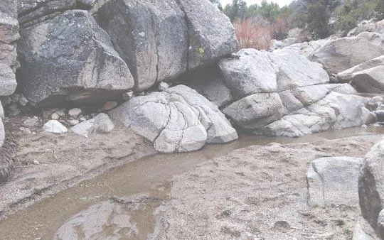 Summer rains bring down gold and gems from the mountain ridges allowing for panning in the seasonal creek.