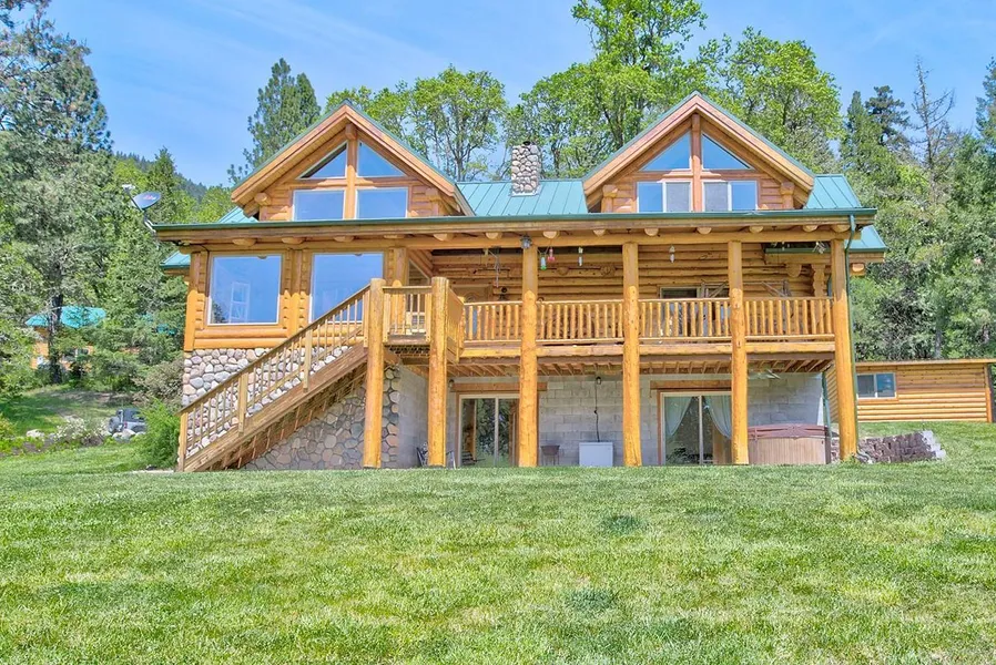 Beautiful 6+ acres, 3 bedroom, 2 bath Homestead Log Home with 40 x 30 shop in Paradise. nestled in your own forest and grass meadow, yet only a mile from I 5 and 8 miles from Galesville Reservoir. Amazing views from every window of this incredible home. Kitchen boasts alder cabinets, electric cook-top and granite counters. Hickory floors in living area. Amazing massive rock fireplace in living room. Master with jacuzzi tub, dual sinks, dual shower head in walk in shower and walk in closet. Spacious rooms, vaulted ceilings and potential for 4th and 5th bedrooms. Spa on lower deck outside daylight basement den with pellet stove to enjoy some cozy nights. Must tour this home to appreciate all the amenities.