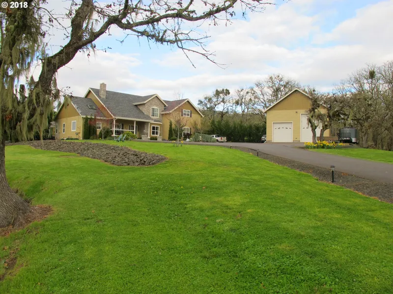 High Quality, custom, in a gated community 2 miles from Rsbg & near the country club. 5 bedrooms, (one has been converted to an in-home movie theater). Lovely setting that's well landscaped, 2 water features, lots of natural stone & entertainer's patio. Paved circle driveway, plenty of pkg & 1500 SF shop w/RV pkg inside. The grounds feature rolling pastures, raised bed garden & 2 creeks. Great setting for horses & alpacas!