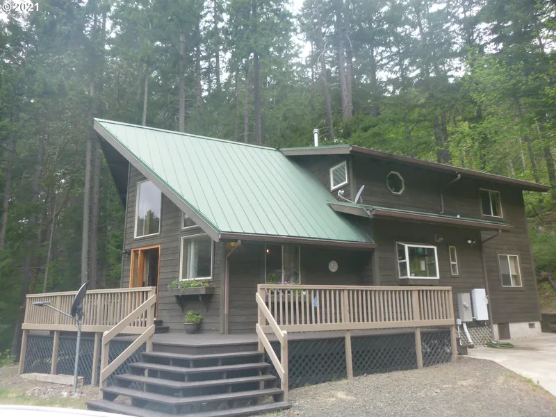 Total privacy and seclusion on over 2 acres, solid Lindal cedar built home. Hardwood floors, vaulted ceiling, updated kitchen granite with island; stainless steel high end appliances, wired for a generator, on demand hot water heater, open floor plan. Beautiful property, scenic views, occasional elk/wildlife. Artesian well with new pump. Gardening area. Walk to country Dry Creek store, yet surrounded by Umpqua National Forest. Heavenly peacefulness, sitting on the deck listening to the river.
