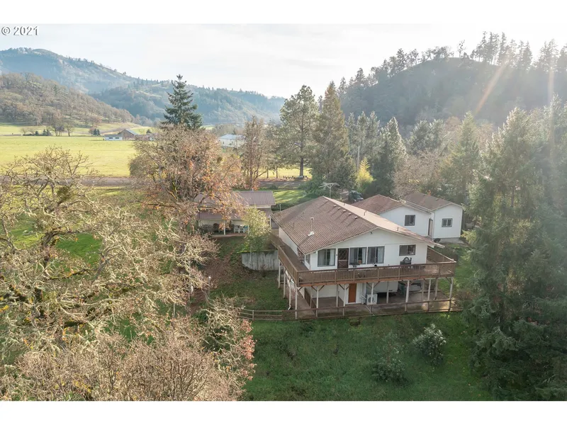 Beautiful riverfront property at the end of Sunshine Rd. The home features 5 bedrooms, 3.5 baths, 2848 sqft, new heating system, hardwood floors on main level that is Madrone 3/4 - 6 inch planks (locally sourced & processed), wrap-around deck, hot tub, & green house. Lower level could be second living quarters. Garages for 4 cars, RV garages for 2, and shop. Owner says, "Great fishing & old water rights! House & garages not in flood plain & do not require insurance." COME TAKE A LOOK!!!