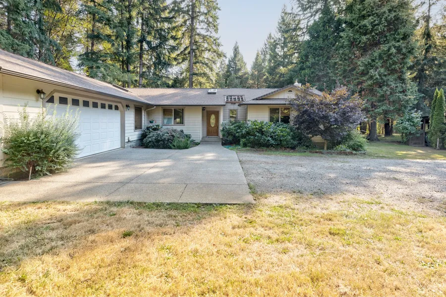 Get away from the hustle and bustle & enjoy the country life! Nestled amongst the tall trees and seasonal creek lays this comfortable well built 3 bedroom 2 bath home with attached 2 car garage and bonus shop space. All three bedrooms are situated in the floor plan for ultimate privacy. The primary features a walk in closet & functional standing shower with seat. The kitchen is light and bright with granite tile counters, eating bar & plenty of counter space. Open dining spaces leads to a step down living room with skylights & certified wood stove. Beyond the laundry room is the third bedroom, tucked away for guests or in-laws. Outside you will enjoy a large deck for entertaining, a storage building nicknamed the ''Llama Lounge'' as well as the bridge crossing the creek to the open barn and pasture area. There is possibility to divide the property as well-build your family compound or dr...