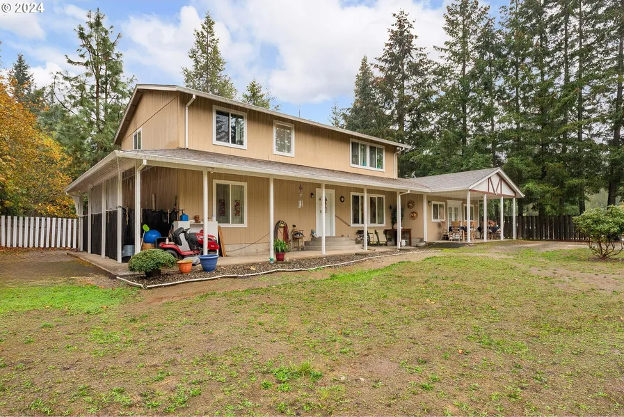 Discover this charming 4-bedroom 3.5-bath retreat nestled in the heart of Canyonville, just minutes from Seven Feathers Casino, I-5 access, and local amenities. Situated on 1.59 acres, the property offers plenty of room to build a shop, store recreational vehicles, or pursue other hobbies. Enjoy outdoor living with a covered back porch, a patio in the fenced side yard, and an additional covered patio at the front. The gated entrance and mature trees provide added privacy. The property also features irrigation rights to Canyon Creek, allowing you to water up to 1.3 acres. Inside this two-story home, you'll find two primary suites along with two additional spacious bedrooms. The open-concept downstairs area creates a warm and inviting space perfect for gatherings. Plus, the converted garage offers extra room for a game area or additional living space ideal for entertaining.