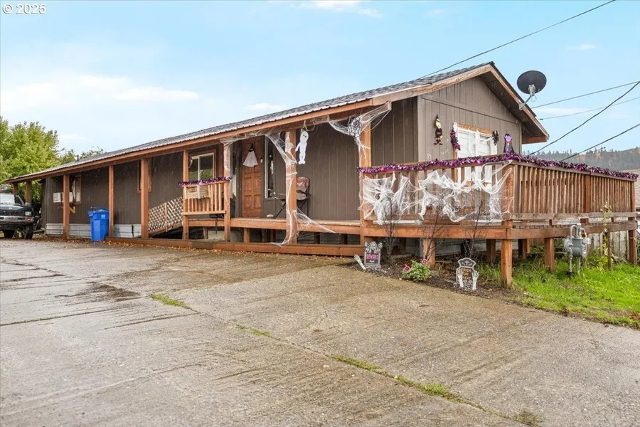 This charming 2-bedroom, 2-bathroom manufactured home in Winston, Oregon offers comfortable, modern living in a convenient location close to shopping, dining and other local amenities. Nestled on its own land, this home combines privacy with easy access to town. Inside, you'll love the open-design floor plan that creates a bright, spacious feel throughout the living room, dining area and kitchen-perfect for entertaining or relaxing in comfort. The kitchen features a gas stove, ideal for anyone who loves to cook and plenty of cabinet space for storage. Recent updates include a new roof and a new walk-in shower, providing both style and peace of mind for years to come. Step out onto the covered front deck to enjoy your morning coffee or unwind in the evenings. The accessibility ramp makes entry convenient for everyone, while the backyard storage shed offers ample space for tools, gardening...