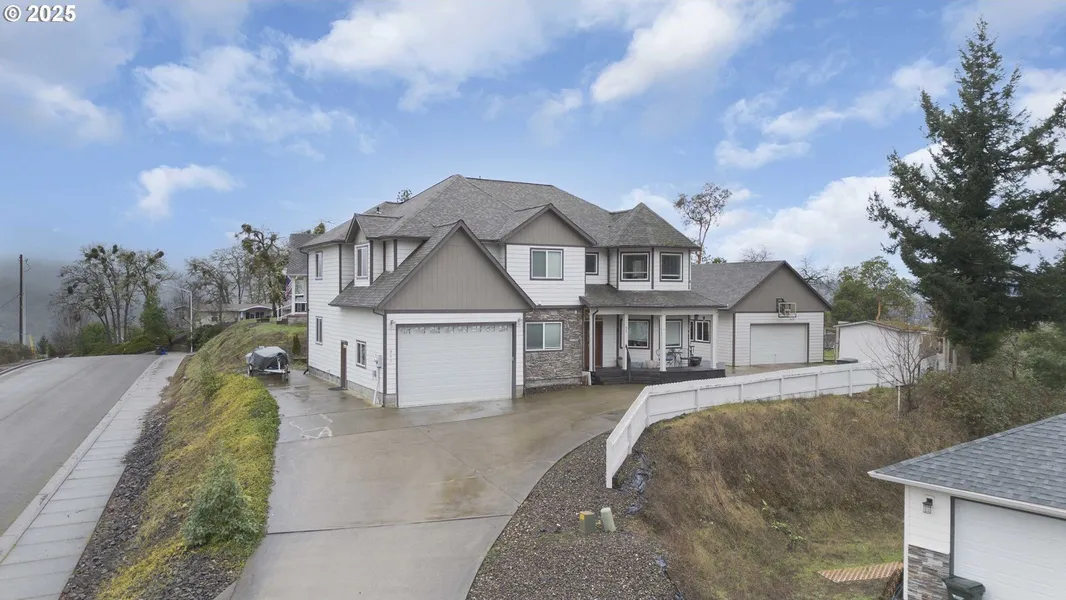 Amazing panoramic views await you at this custom built, half acre +, dual lot property. Custom granite chef's kitchen with island cook top, eat bar & dual ovens. The spacious living, family room, and formal dining area feature high ceilings and LVP flooring. Upstairs you'll find the primary bedroom suite featuring cathedral ceiling, dual walk-in closets, low step shower and a luxurious jacuzzi tub. Large windows offer beautiful views of the valley, surrounding hills and allow for abundant natural lighting. All bedrooms are upstairs and oversized. With 5 bedrooms and 3.5 tile floor baths, this home has plenty of room for everyone and includes dual laundry facilities. The large lot with an additional 624 sq/ft detached garage/shop offers room for all your toys or shop workspace. Southwest exposure and fenced yard makes for excellent gardening possibilities. Conveniently located with schools, shopping and medical services nearby. The partially converted attached garage with separate key pad entrance, plumbed for kitchenette, can be used as an additional bedroom or easily converted back to garage space. Call today to arrange for your private viewing.