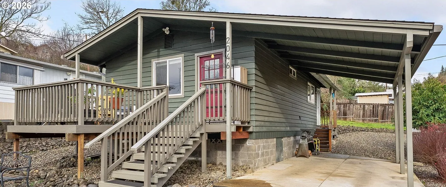 Completely remodeled and move-in ready, this charming 2-bedroom, 1-bath home offers 640 square feet of thoughtfully updated living space on a 7,000 sq ft lot. The front room features an open floor plan that maximizes space and natural flow, while both bedrooms are generously sized. Updates include stainless steel appliances, an apron-front steel sink, updated bathroom with a full walk-in shower, vinyl plank flooring throughout, and porcelain tile accents. Exterior improvements include new gutters, a newly built 8x10 shed, and a fully landscaped low-maintenance rock yard. Enjoy mountain views from the deck, accessed by exterior steps, with additional access from the back door. Comfort is enhanced with a Dylos ductless heating system, and a carport provides covered parking. The home has been professionally stabilized with Helical piers due to clay soil conditions, and the transferable warr...