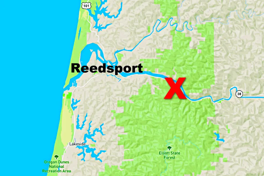 Driving Directions: From Reedsport, drive 8+ miles east. Pass the Brandy Bar Landing condos on the left. Parcel is on the right, across Hwy 38 from the Umpqua Wayside. Take the maps.