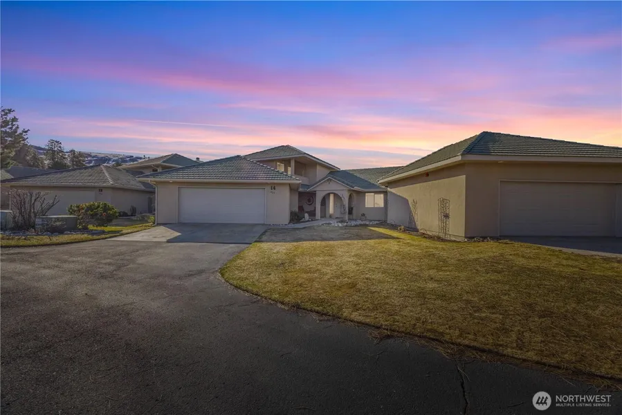 Rare 3-bed, 3-bath double ensuite villa perched on the 9th fairway @ prestigious Desert Canyon Golf Resort. Enjoy breathtaking panoramic views of rolling greens & surrounding rugged beauty of Central Washington. This 2 story retreat offers an unparalleled lifestyle for golf enthusiasts. Fully furnished, spacious, light-filled living area w soaring ceilings & large windows framing the picturesque landscape. Enjoy seamless indoor-outdoor living w covered front, back & upstairs patios ideal for al fresco dining. Corian counters throughout, newer interior & exterior paint, SS appliances, 2 car garage, ample storage, & access to the resorts top-tier amenities including clubhouse, restaurant, sport court, pool & yard maintenance & weekly events.