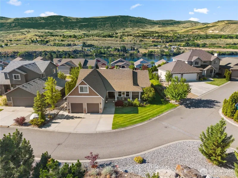 Charming rambler with spectacular river, mountain and territorial views with community water access. Perfectly appointed floor plan with 3 bedrooms, 2 baths and an oversized bonus room above the garage. Beautiful kitchen featuring sleek stainless steel appliances that complement the bright, airy feel of the living spaces. Fireplace in the living room. The primary bedroom is a peaceful retreat, complete with a walk-in closet & spacious bath for added privacy and convenience. Step outside and enjoy the beautiful views from the back deck with a hot tub and pergola for outdoor relaxation. The large backyard is ideal for gardening, with areas already set up for blueberries, strawberries and other plantings. RV storage available included in HOA.