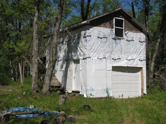 TOWN OF MINONG - 17 ft x 20 ft building ...2 levels.. lower level is set up as a garage.. Upper is two rooms partly finished ... electric runs are set up for a generator connection if you want . The lot is just under 1 acre 200 ' x 208' Very wooded, very private. No well, no septic, no electric. Close to many lakes, ATV and snowmobile trails. Sale is as is. Makes a great retreat for that right person at a great price.