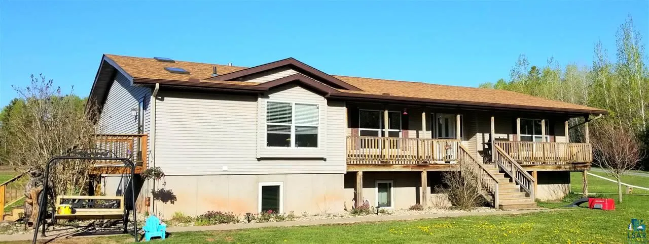 You found it! This gem is located just a short drive from Superior and Duluth and may be just the place you've been seeking! Hidden on just under 19 acres , the property is ideal for someone who'd like to have some livestock (the owners have horses and cows) or perfect for a private estate for someone who doesn't. The home has been well cared for and features spacious rooms, vaulted ceilings and skylights. There's both a formal and informal dining room, a gorgeous kitchen with a breakfast bar, an expansive master suite with master bath, two additional bedrooms, a full bath and laundry all on the main floor. The living room has a gas fireplace. Downstairs you'll a huge family room with a pellet stove, two more bedrooms, a bonus room and another bath. There's a small barn, a pole building, a large garage and more. Heat with wood, propane or both! Note: Driveway easements on E & N.