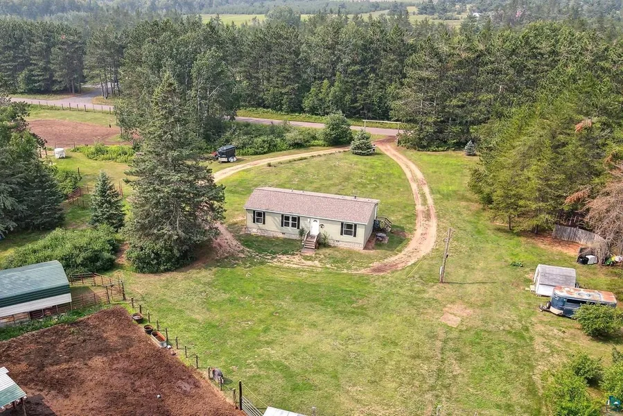 Welcome to your dream property! This property offers a perfect blend of modern living and country charm. Situated on an expansive 24.4-acre lot, this one-level 3-bedroom, 2 bath home was built in 2020. Inside you will find a convenient open floor plan, large center island in the kitchen, and a lot of natural sunlight. Whether you're an equestrian enthusiast or looking to start your own hobby farm, this property has everything you need. The landscape features a mix of fruit trees, mature trees, open field, creek running through the back, and riding arena. Also, you will find a shady gathering space among the pine trees with a fire pit. The large carport can continue to be used as horse stalls or park vehicles. Just a few minutes from the Bird Sanctuary, Solon Springs School, conveniences, multiple lakes and recreational areas.
