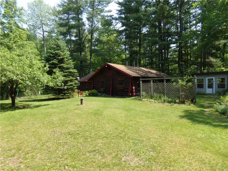 **Motivated Seller** LOG HOME CHARM YEAR-ROUND Nestled among white pine and birch, 2 BEDROOM, plus DEN/OFFICE log home is just a few minutes? walk from the beautiful Upper St. Croix Lake. The plumbing was recently updated throughout the home, including a new water heater, and a newer updated Well. Whether you plan to live here year-round, or purchase as a second home retreat, you will not be disappointed in the fun that welcomes you. There is an abundance of outdoor recreation available, such as: fishing, hiking, ATVing, swimming, snowmobiling and cross-country skiing. After a day of summer fun, the 3-SEASON PORCH is a perfect spot to kick back and relax. There is plenty of space to store your recreational toys, and a boat launch a few blocks away. This sweet treasure gives that old fashioned log home feel without giving up modern convenience. Home also includes Forced Air Heating & Central Air, detached 24x20 garage, 18x6 lean-to, and small garden shed. All set on a large corner lot.