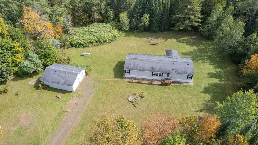 Privacy and location are amazing, but this place has so much more to offer! If you are looking for a 3 bedroom, 2 bathroom home with a large detached garage, this could be the one you are looking for. If the condition of the property is important, this property is in great shape too! There is a front entry that allows you to come inside and get out of the elements without tracking the northlands snow and dirt in the home. The living room is spacious and has tons of natural light from the 3 vinyl windows. The vaulted ceiling makes this room feel huge too! The kitchen has great space, great cabinets and is attached to the living room. The appliances are in great shape and make life easier. There is a bonus room behind the kitchen that works as a den, or family area with a vaulted ceiling and a built in hutch/divider. This is a great room that is one of the rooms in the house where you can be involved with everyone and still be tucked away to watch the game or interact with others on your own terms! All 3 bedrooms are large and have closets with storage galore. The primary bedroom also has a private bathroom! There is a central hallway that gives great flow and allows everyone to feel right at home. The main bathroom is amazing with a tub w/shower and toilet. There is a spacious laundry area with a washing machine and dryer. Mechanicals consist of 200 Amp circuit breakers, a propane gas forced air furnace, The foundation is sitting on engineered frost piers and concrete blocks. It is also skirted nicely to keep out the elements. Outside features a tidy porch, decking and includes a mound system to handle the dirty job with minimal efforts. Vinyl siding and metal soffit and facia to keep this home looking pristine with minimal effort. The land is spectacular! The fully insulated detached garage features one side that is a garage space for 1 car with space for additional stuff and another side of the building offering a shop area for all your indoor and outdoor projects. This garage was initially designed to have a single 16' door so it could easily become a 2 car garage. If you need space to stretch out in, this land offers that in spades. This is a place where you can have your trees and firewood too! The irregular shaped lot offers you more than 19 acres of land and provides you room to grow. Maybe a potential pole building or barn are in your future to store all the stuff that you worked for. Get home and enjoy where you are!
