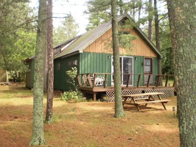 # 891402/49662 Charming lake cabin needs family to take over and finish a project in progress. Gorgeous lot with towering pines provides shading with southern exposure. Mature pines allow beautiful unobstructed view of the lake. Enjoy perfect level grade from the cabin to your sand shore. Cabin is being sold as-is and includes a couple boats, paddle boat, canoe, aluminum dock and all contents in the cabin. There is a newer drilled well and conventional septic. The lake lot, well and septic is easily worth the asking price.