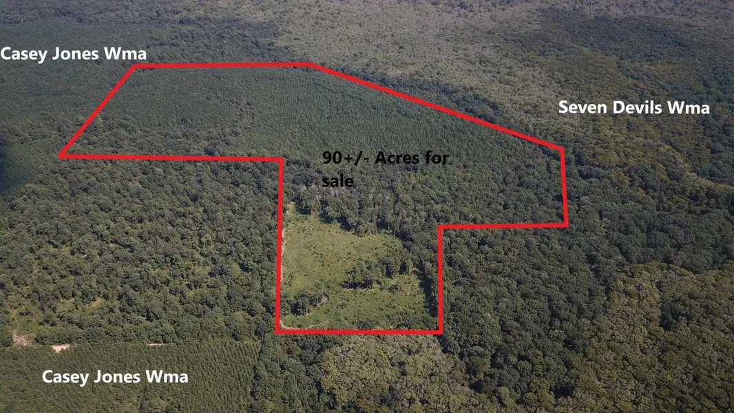 This 90+/- acre tract is a must have for the hunter who wants it all. Surrounded by 6,000 acres of Wildlife Management Area ground this property is located directly in the middle of Seven Devils WMA and the Casey Jones Leased Lands WMA, making it a natural funnel for all sorts of wildlife. The property consists of pine, hardwood bottomland timber, and a relatively new clear cut of about 12 acres that was replanted back in pine. With the diverse habitat and cover the property holds an abundant number of deer, turkeys, hogs, and bears. The surrounding two WMA's do not allow baiting for hunting, this giving you a big advantage of being able to put out feed for the animals and keep them hanging around the property. Seven Devils WMA borders the south and southeastern side of the property and is nothing short of breathtaking. Predominately filled with big cypress and hardwood bottomland timber...
