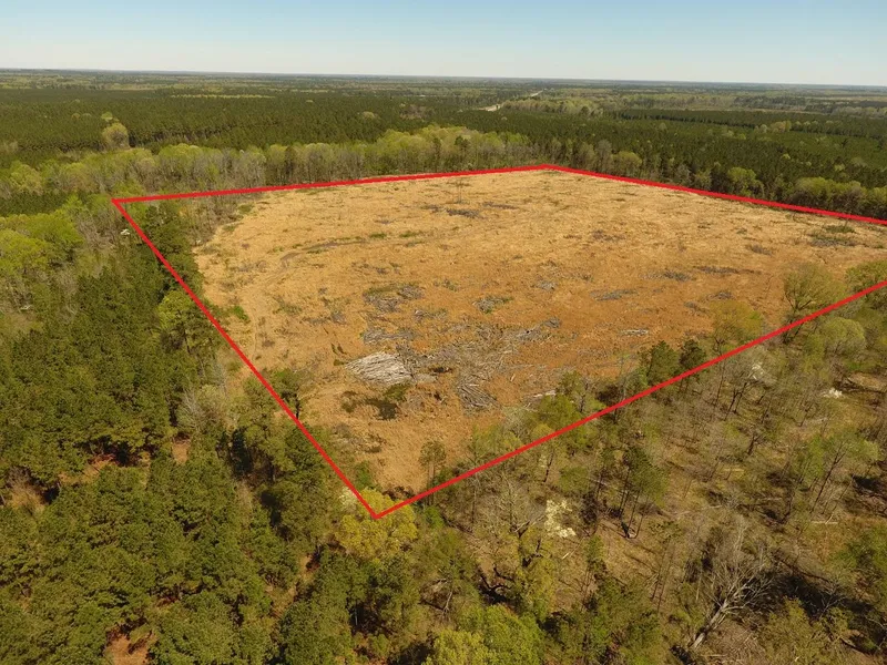 The New Light Road Tract is located 4 miles south of Monticello Corporate limits. The property is described as the NE of the NW of Section 19, Township 13 South, Range 6 West, Drew County, Arkansas. The predominant land use in this part of the county is industrial forestry. Access to the property is from the south off New Light Road via a native surface woods road across Weyerhaeuser Company. Timber on this property is a 2019 pine plantation that was established following chemical site prep and planting with containerized seedlings. Sandy Creek runs through northern part of property. The predominant soils, according to the NRCS Web Soil Survey are poorly drained silt loam and moderately well drained fine sandy loam soils with an average native site index for loblolly pine of 84 feet (Base Age 50). Approximately 1/4 of the property is in the Sandy Creek flood plain.
