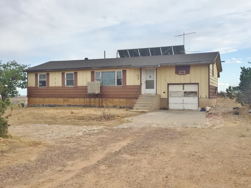 Ranch style home with an unfinished basement. It has 40 acres with a spring. Excellent views atop a hill. Private location.