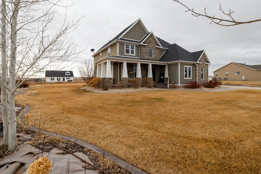 Charming country 2-story home located in the Stonegate subdivision. This beautiful property sits on a 1.03-acre lot, providing ample space. Upon arriving to the front of the home you are greeted with a picturesque wrap-around porch, perfect for enjoying the fresh air outside. As you enter the house, you'll be welcomed by a spacious main floor with a large family room featuring a wood-burning stove. The house features 4 bedrooms, including a beautiful master suite, perfect for relaxation after a long day. This property is located just minutes from town, making it convenient for daily errands and activities. Additionally, it comes with a secondary water share to keep the new landscaping lush and beautiful. This home is perfect for those seeking a peaceful and comfortable lifestyle in a friendly neighborhood.