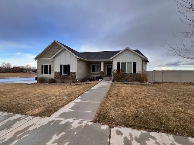 Beautiful custom home in the perfect location! Come tour this 5 bedroom 3 bath rambler. Its open concept floor plan features an inviting entryway leading into a spacious family room and kitchen, perfect for entertaining! Beautiful master bedroom and master bathroom on the main level. Downstairs you'll find 3 bedrooms and a large family room, with a projector that is included with the home! Tons of storage, and a great location. Right next to Constitution Park, schools, churches, and Aquatic Center! Square footage figures are provided as a courtesy estimate only. Buyer is advised to obtain an independent measurement.