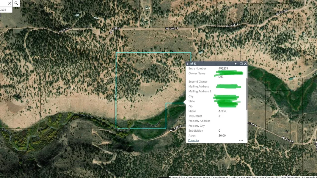5179- CREEK FRONTAGE, 20 acres just south of Fruitland, with frontage on The Currant Creek. The top of the property is sloping and useable, with pinion-pine and juniper trees. Astonishing view of the Creek valley below, and Currant Creek Mtn. to the south. Its a fairly steep drop off to the creek, and the buyers will need to cut a walking or ATV trail to access the bottom creek portion. Power is nearby, and good water wells can be drilled near the creek. This is mainly a cabin and recreational area, with unlimited hunting, fishing, rivers, reservoirs, ATV trails and Forest land in the immediate area. Located 1 hrs from the Wasatch Front.
