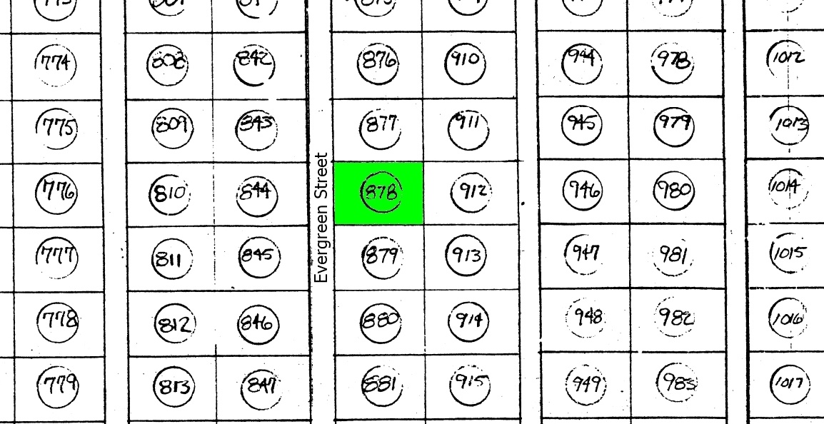 123 yards later turn left and make your way about 192 yards across the meadow to Lot 878.