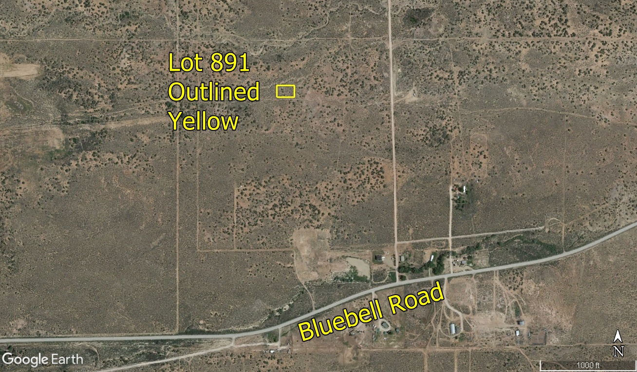 There is a platted road easement along the west side of the property, but it has not been graded in. It looks to us on Google Earth like Lot 891 used to be accessed via trail road from the east, as described in the driving directions.