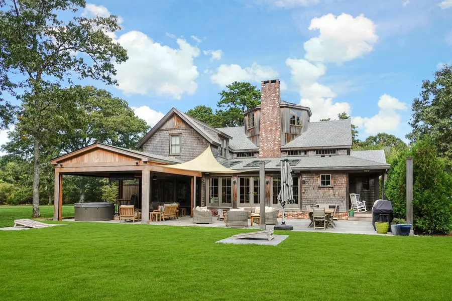 Perfect Edgartown Location. At less than 1.5 miles from town and across from Morning Glory Farm, you'll have easy access to the shops and restaurants of the village, as well as miles of paved bike paths and hiking trails through Sheriff's Meadow and the State Forest. The location also allows for a quick trip to South Beach or the airport without traffic along the way, even in the busiest summer months. The property includes a 3,537 s.f. main house with a full basement and attached two car garage, plus a 4,320 s.f. multi-functional barn including a partial basement and 2,160 s.f. of beautiful finished space above. Every detail of both the house and barn were meticulously planned and completed using the highest quality construction and finish materials. Outside, you will find the same attention to detail, with landscaping that has created a private oasis with a huge yard and outdoor living space that includes a motorized screened room and a multi-zone Sonos system. Some of the interior feature highlights are the atrium sunroom and dining area with fireplace, the large kitchen with custom concrete countertops, a wood fired pizza oven, the 32' corbelled tapered brick chimney, stunning reclaimed timbers throughout and a secret passageway to the third floor tower room. The barn is large enough to house several boats and cars or could be transformed into a true party barn. The finished space above the garage features a hybrid steel and timber scissor truss design that is as unique and beautiful as it is strong. This space is totally flexible but would certainly be ideal for a home business, fitness studio, or entertaining area. The owners have a pool permit and contract in hand with a scheduled installation time frame, should the new owners wish to add a pool.