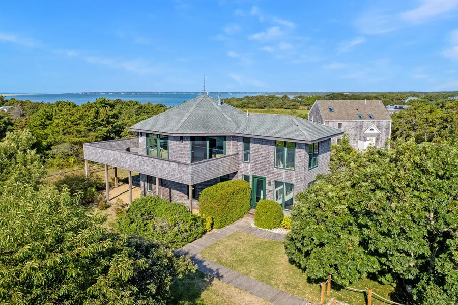 This stunning reverse-contemporary four-bedroom custom home is perfectly situated in one of Chappaquiddick's most sought-after locations. Designed with an expansive open-concept floor plan, the airy and inviting living area flows seamlessly onto a generous wraparound deck, where sweeping, bird's-eye views capture the natural beauty that surrounds you. Thoughtfully renovated, the home blends modern updates with custom finishes to create a rare balance of style, comfort, and year-round functionality an uncommon find in this idyllic setting. Enjoy direct access to Katama Bay, just a three-minute stroll down the road. Its calm waters and sandy shoreline are ideal for swimming, boating, and shellfishing. Nearby, the Wasque Preserve offers over 200 acres. of pristine conservation land, with scenic trails, abundant wildlife, and direct ocean access. Whether you're seeking a serene coastal retreat, a multi-generational family home, or a proven investment property, 76 Washque has it all. With an impressive rental history and bookings during both summer and shoulder seasons, it stands out in today's market. This home is more than just an address -it's the essence of Chappy living.
