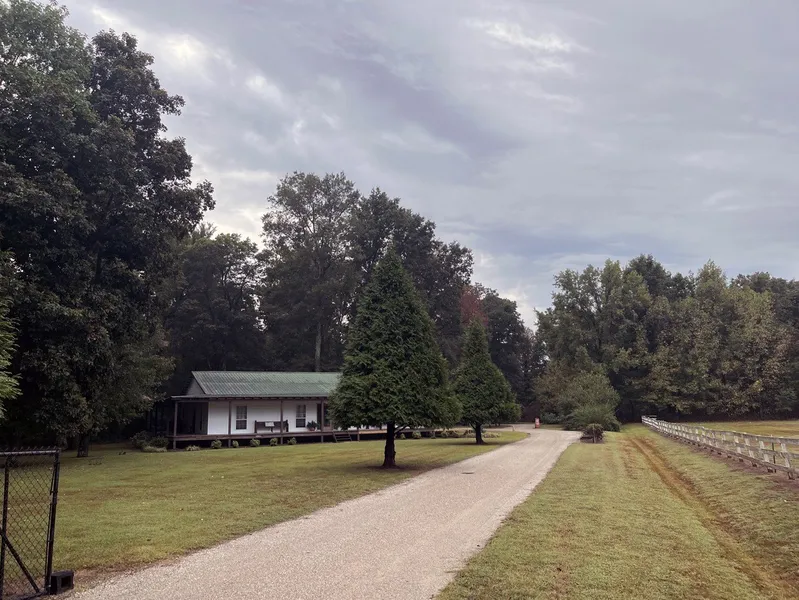 This exceptional property offers a rustic 3-bedroom, 2-bath home with a gated drive, 2 outbuildings, and a stunning wraparound porch. Inside, enjoy custom cabinetry, a baker's dream kitchen with marble counters, a spacious island, and walk-in pantry in the designated laundry room. Additional features include open-concept living/dining area, bonus rooms and pocket doors. The 2-car detached garage includes a bathroom, office, and air compressor with access to both outbuildings. The barn, with half concrete/half dirt flooring, contains extra materials used in the home’s construction. The wooded acreage features a natural creek and serene walking trails. No detail was overlooked from crawlspace to attic in this unique home. This gem won’t last long – schedule your tour today!