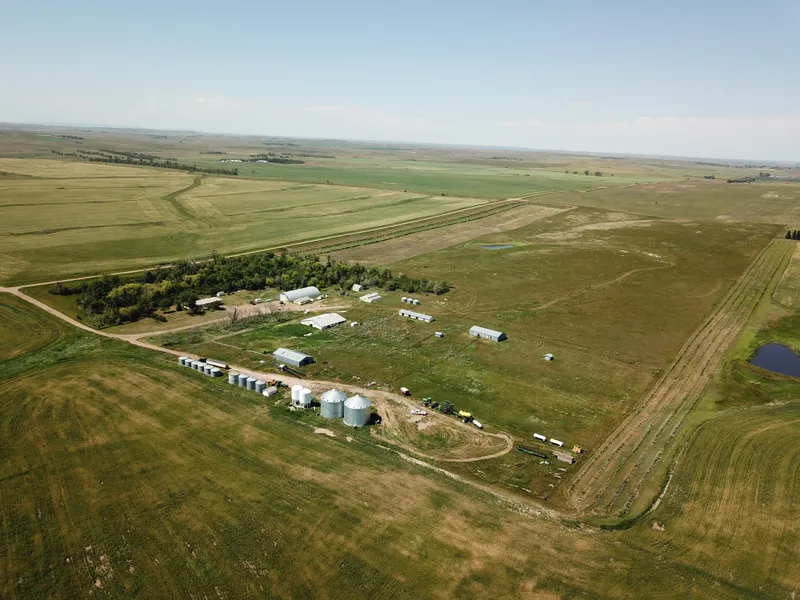 Property Note: This parcel features 80 acres with a very functional farmstead headquarters, surrounded by a mature tree shelterbelt and highlighted by a very nice home that has a tastefully remodeled main floor. The balance of this parcel features grazing land, hay land, and fresh shelter belt tree rows.