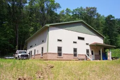 This is an unfinished post/ frame building. You will love this setting and is completely wooded making great hunting and plenty of wood to fuel your outdoors wood burner. This burner is also fueled with LP fuel if you are not there to fire the wood boiler. All the beautiful maple cabinets are there to finish the kitchen ($13,000 worth). Home has steel siding. Inside walls are 16' high. Boiler will heat up to 7,000 S.F. of space.